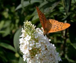 Farfalla Argynnis Paphia su infiorescenza di Budleia