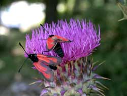 Farfalle (Zygaena?) su Fiore di Cardo.